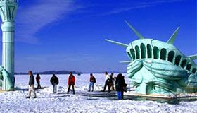 It gave you the illusion that Lady Liberty had been dropped from the sky and crashed through the ice.