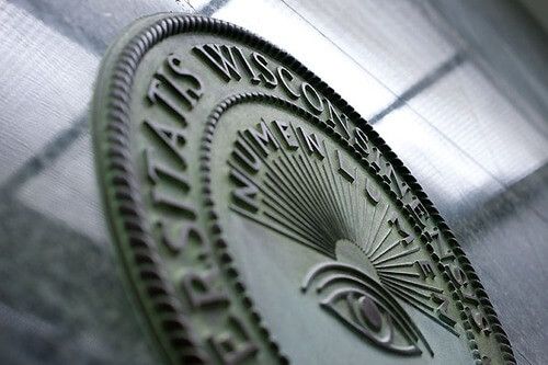 One of the great mysteries of UW-Madison is the university’s seal, a vaguely creepy-looking design showing the rays of the sun over an upturned eye, and the rhyming motto “Numen Lumen.” Sometimes, when the UW is feeling particularly pretentious, it includes the Latin phrase Universitatis Wisconsinensis Sigillum, which means “the seal of the University of Wisconsin.” The symbols look so odd and cryptic that people will believe almost anything you tell them about our sigillum: it’s Masonic, it’s gnostic, it’s ophthalmic. And since its origin is shadowed in the mists of time, you’d have a hard time proving anyone’s claims wrong.
