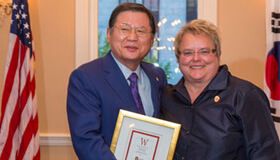“It was wonderful to have the opportunity to thank and honor such a distinguished alumnus as Dr. Hur for his amazing leadership in South Korea and his service to the university,” said WAA president and CEO Paula Bonner MS’78. “He and the other Korean alumni are extraordinary examples of the commitment and service to this institution that exist no matter where alumni are in the world.”